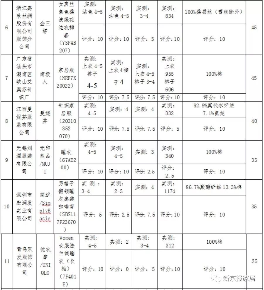 最近,广东省消费者委员会官网就发布了一项家居服的比较试验,从商场、专卖店及网上购买的共30款市售家居服中,基本涵盖了“ 优衣库”、“无印良品”、“H&M”、“爱慕”、“芬狄诗”、“6IXTY8IGHT”、“歌瑞尔”、“南极人”等消费者熟知的品牌以及大众消费的主流品牌。