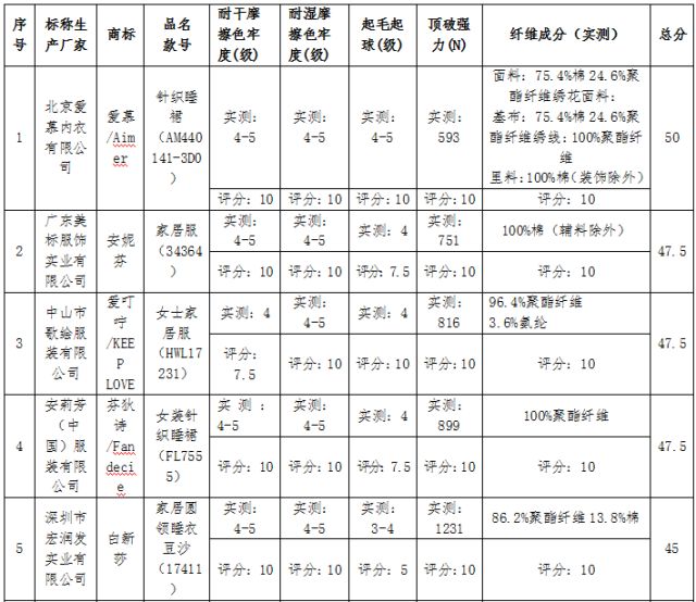 在环保(甲醛、PH值、可分解致癌芳香胺)方面,全部家居服样品均符合国家标准要求,这一点倒是可以放心的。