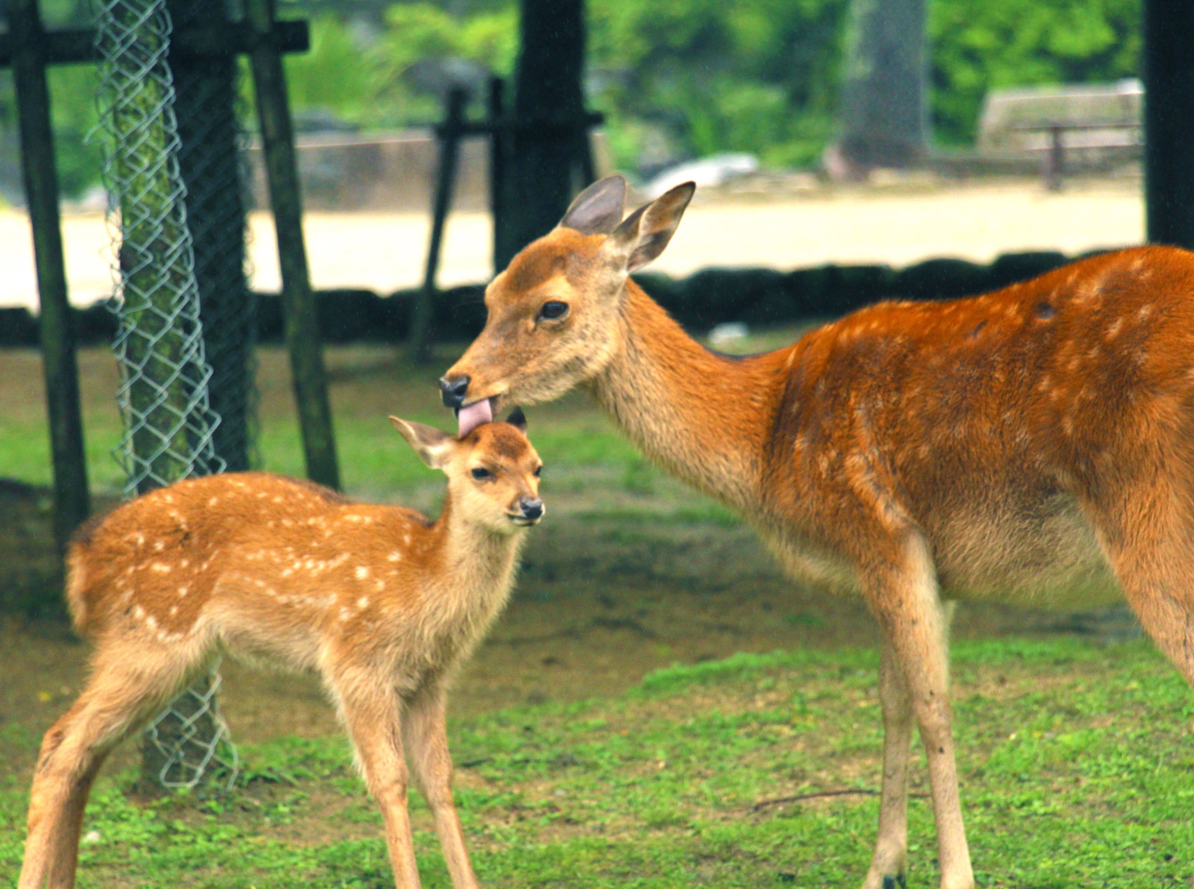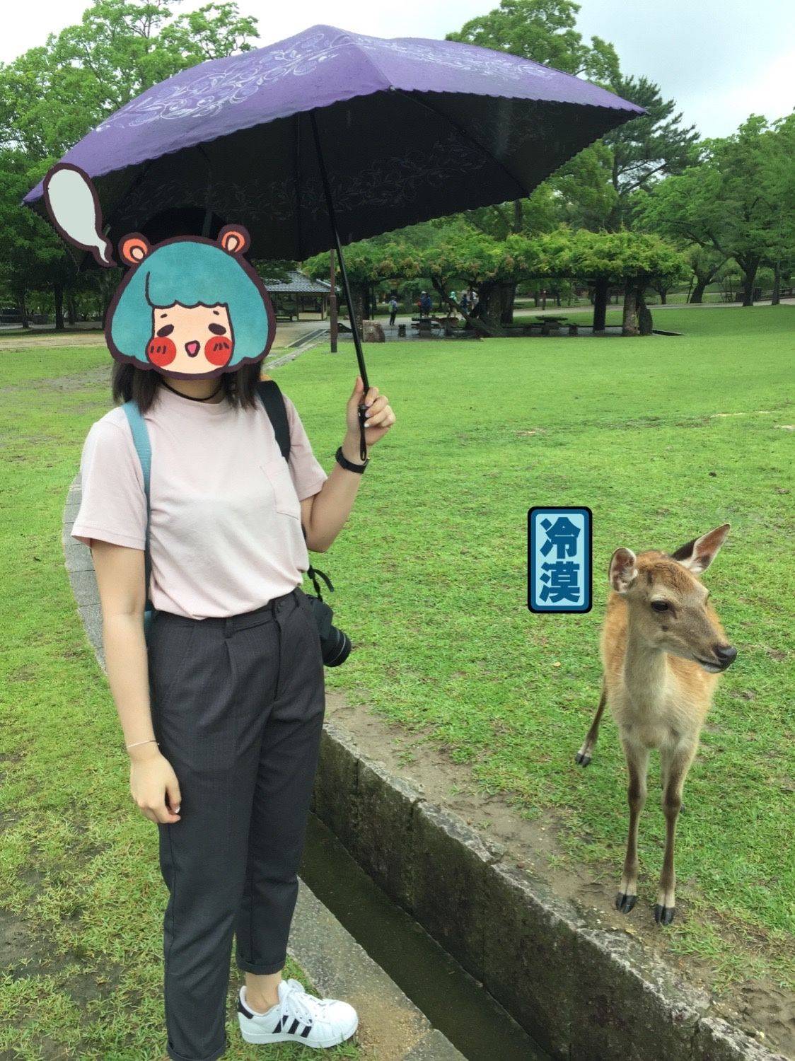 去的那天,奈良下小雨,一开始担心小鹿会不会不出来了。后来发现担心完全没必要!哈哈哈!小鹿们在雨中依旧好好地吃着草,睡觉!