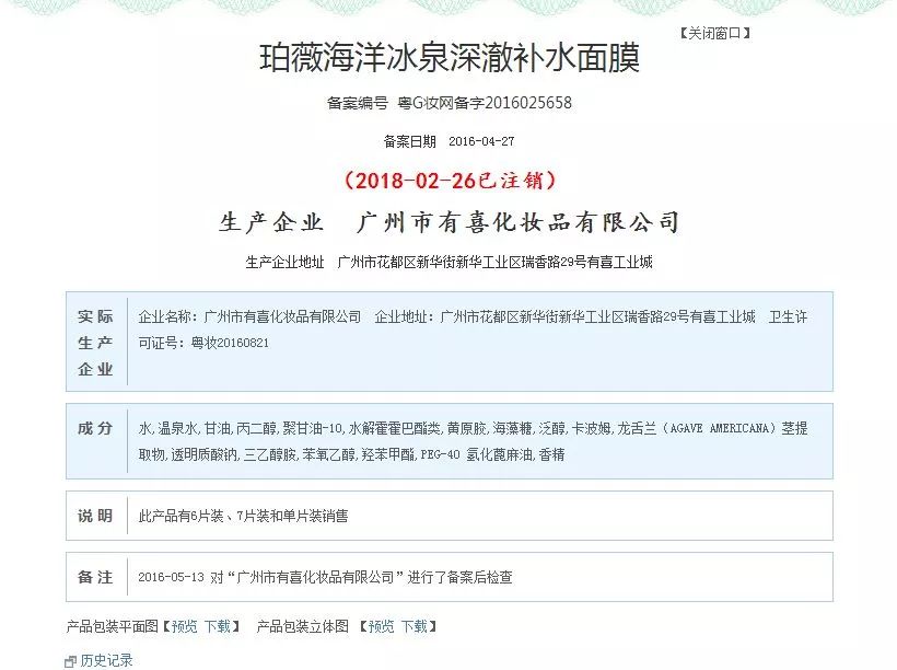 通过查询国家食品药品监督管理总局国产非特殊用途化妆品备案平台,可以看到以上两款产品于2018年2月26日已被注销(见下图),这意味着该两款产品已不能再进行生产。