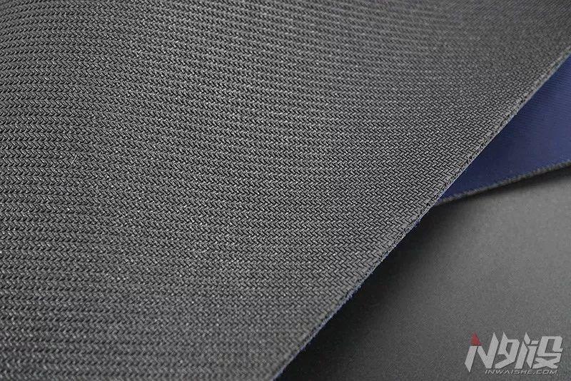 有别于传统布面鼠标垫编织纹理,QPAD CD-35 CORDURA的尼龙编织布表面呈斜纹分布(往右下角倾斜),纹理规整、细密。与布垫相比,CORDURA面料偏硬,鼠标在上面滑动摩擦噪音更大。