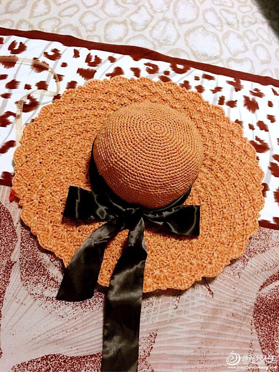 选用1㎝丝带(雪纱带1团),4㎝和4.5钩针,基本都用4㎝钩针,只在帽沿最后二圈用4.5钩针钩。