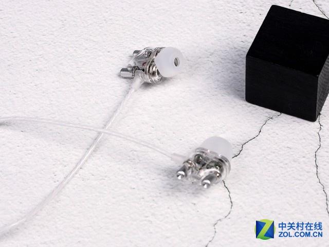 硕美科M7采用全透明式腔体设计,造型新颖,拿在手上可以清楚的看到内部并联排线。耳机的腔体符合人体工学设计,佩戴感非常舒适。同时腔体具有良好的隔音性能,佩戴后感觉被动降噪能够达到-25dB以上。