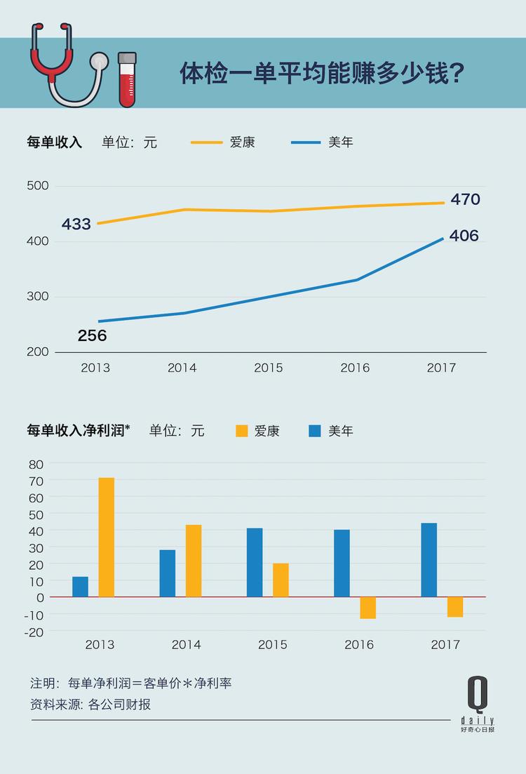 如果是在爱康和美年这两大民营体检机构体检。每进去一个人平均要支付 400 多元,大多数人一年不会超过一次。