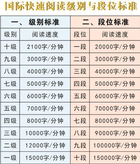 “速读”是相对于传统阅读而言的。传统阅读指每分钟1000字以下的阅读,多为“精读”,按国家教学大纲规定,初中的阅读速读应该为500字/分钟,高中600字/分钟,而据抽样调查显示,仅有5%能达到这一要求。而“速读”则指阅读速度在1000字/分钟以上的阅读。