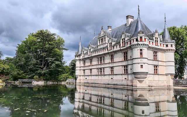 护城河环绕的阿宰勒里多城堡(Chateau d'Azay-le-Rideau)修建于16世纪,是卢瓦尔河谷地区最美丽的城堡之一。白色的城堡坐落在安德尔河中的一座自然岛屿上,巴尔扎克把它称为“一颗镶嵌在安德尔河上的多面钻石”。