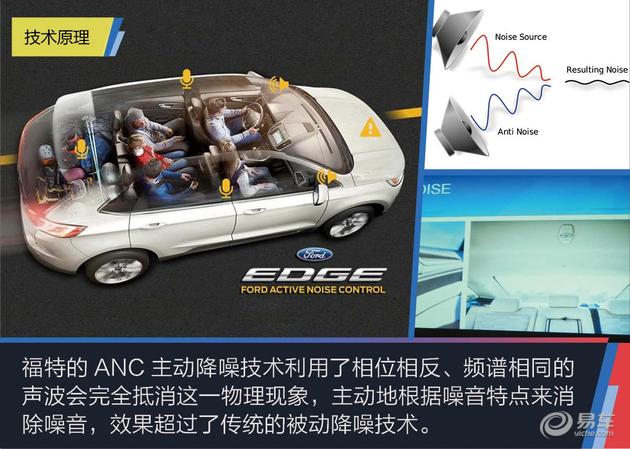 采用ANC主动降噪技术的除了锐界,还有福特旗下的金牛座、蒙迪欧等车型;另外,凯迪拉克的Bose降噪技术也是基于同样原理。那么,与噪音相位相反的声波是如何产生的呢?它其实就来自噪音本身,降噪专家们通过电子线路将采集到的噪音调制成反相位,然后再利用消音扬声器发送出来,使之与原本的噪音互相抵消。