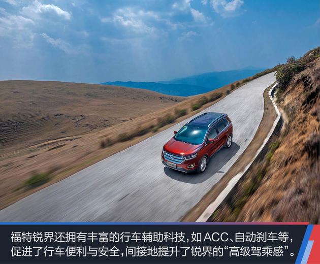 如果将“高级驾乘感”的外延扩大,还会涉及到福特锐界的更多科技,比如:让操控方式多种多样的SYNC3车载连接系统、让行车更加安全的各种辅助系统。汽车展现出来的是一个非常复杂的系统,拥有科技的助力,这个系统变得越发友好,“高级驾乘感”也就愈发明显。