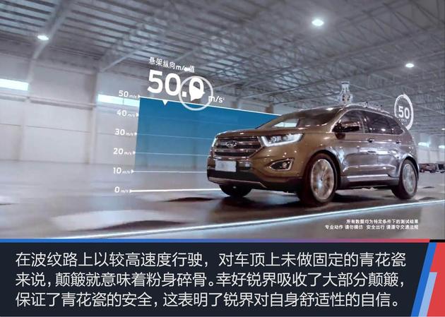 正是因为有了如此出色的性能基础,福特锐界的工程师敢于把名贵的青花瓷放在车顶上通过颠簸的波纹路面。不信,请看下面的视频:用科技创造强大!锐界用青花瓷做道具?