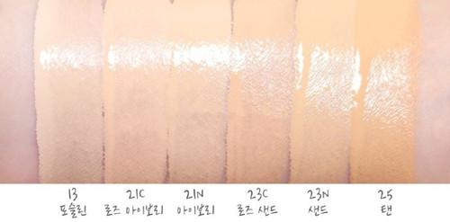 这款粉底液体积较小,即使是随身携带也很方便,共有6个色号,最常使用的是21号和23号,建议大家根据自己的肤色选择最适合自己的颜色。