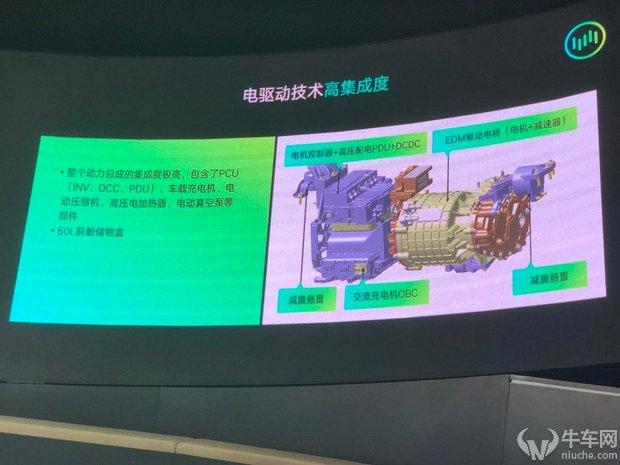图:在博格华纳成熟电驱动产品EDM集成电桥的基础上,进行二次开发,自主集成动力总成核心零部件,整个动力总成的集成度极高,包含了PCU(INV、DCC、PDU)、车载充电机、电动压缩机、高压电加热器、电动、电动真空泵等部件。