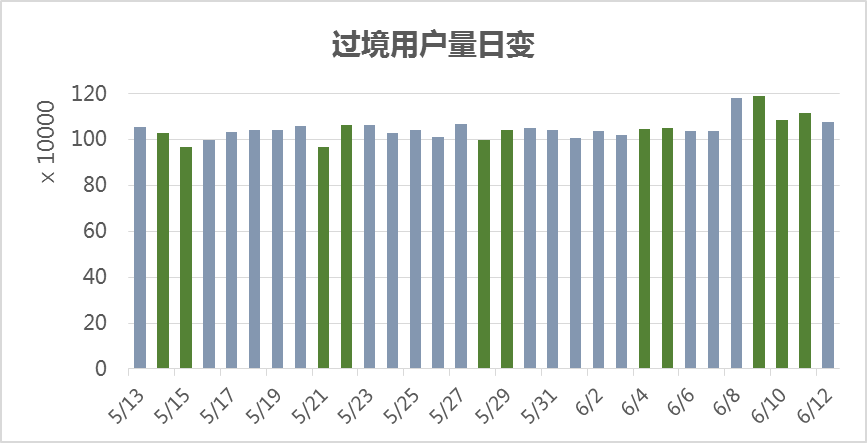 经过对不同手机用户在苏州的停留时间来识别过境人口,一般认为连续多天在苏州停留时间小于2小时的手机用户为过境苏州的人口。