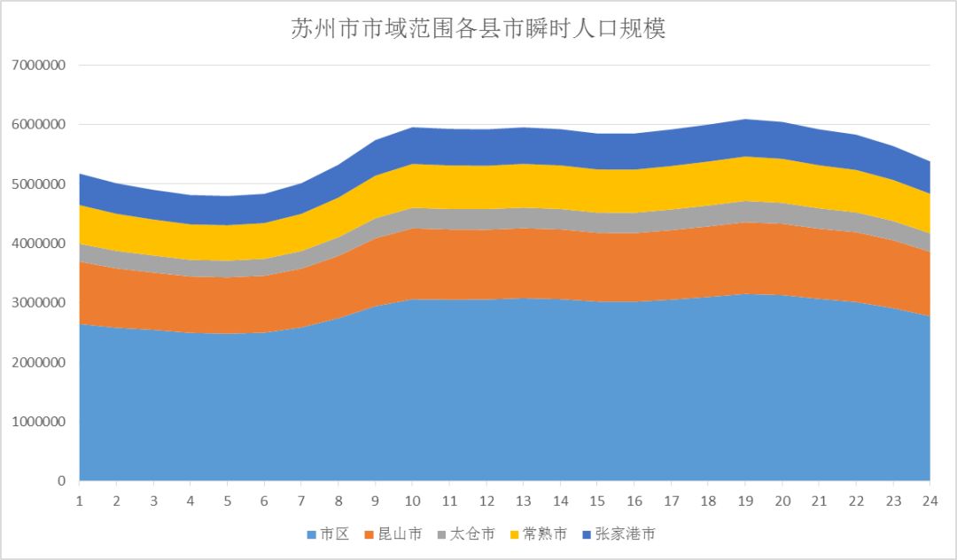根据手机用户的出行轨迹以及停驻信息,可以判断手机用户的大致的发出地与目的地,以及出发与到达时间,进而分析苏州市人员的出行情况,包括出行时辰、出行频次、空间联系等。