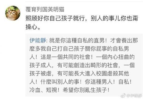伊能静昨天(10日)下午在微博分享了这样一条新闻:四川南充一女子和老公离婚后,心情不好就对4岁的亲生儿子施暴,将孩子打得鼻青脸肿、遍体鳞伤。她声称“打自己孩子天经地义,我生他时差点难产死掉,早知道他不听话,还不如当时掐死他。”伊能静义愤填膺,表示“自己没有好好做人的能力,请你不要生孩子”。