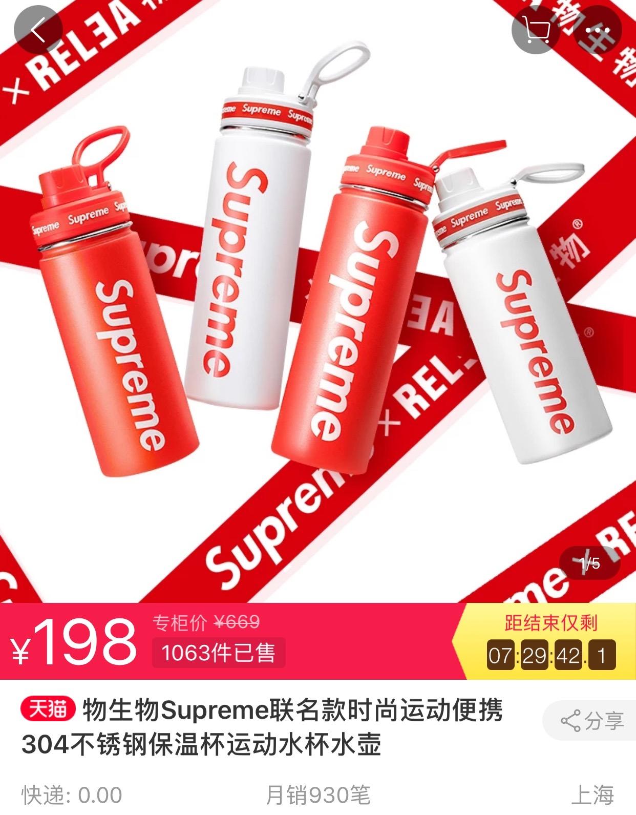 不少品牌都曾与潮牌界龙头大佬 Supreme 推出联名系列,这些联名款有了 “Supreme” 加持往往身价暴涨,成为炒价利器。今日 Supreme 平价联名款却刷爆网络,原来天猫品牌物生物官方声称获得了 Supreme 官方授权成为了平价副线代理商,更是携手推出 “联名款” 保温杯。这款联名不要 998 只需 198 ,官方甚至晒出了 “授权书” 。网友纷纷吐槽大开眼界,并调侃自己也是买得起 Supreme 联名的人了。不过目前天猫旗舰店销量已超过 900 单,说明还是有些不明真相的朋友误信了虚假广告,希望大家擦亮眼睛谨慎消费。