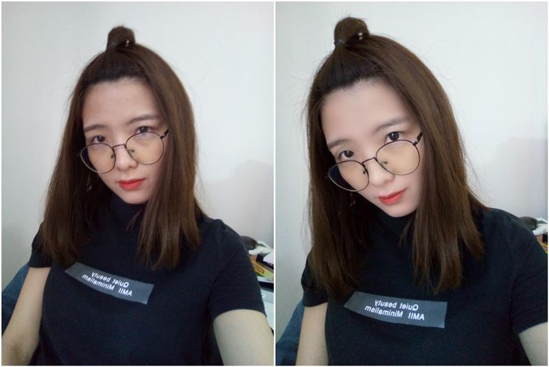 美颜前与美颜后。