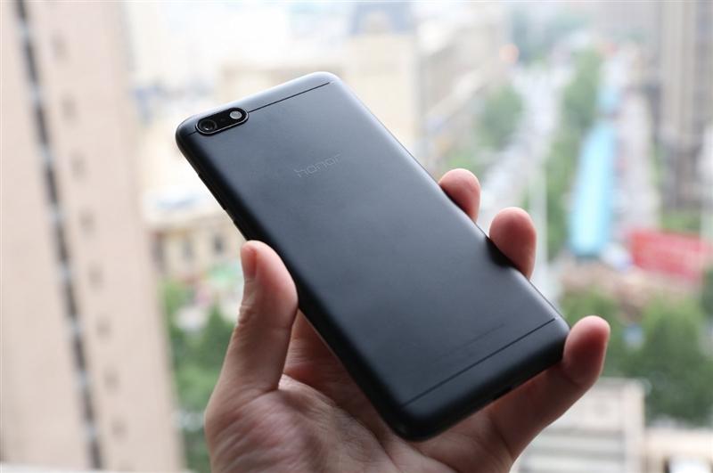 荣耀畅玩7的正面,笔者手中的是黑色版本,前面板同样为全黑色,因为屏幕采用了18:9比例,机身竖长小巧非常圆润,有一种萌萌的感觉。