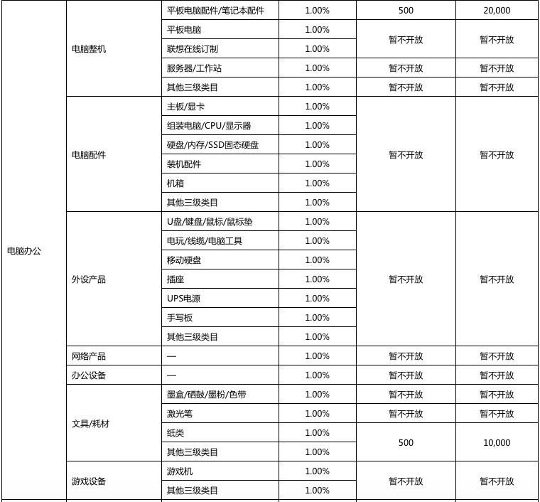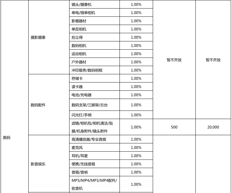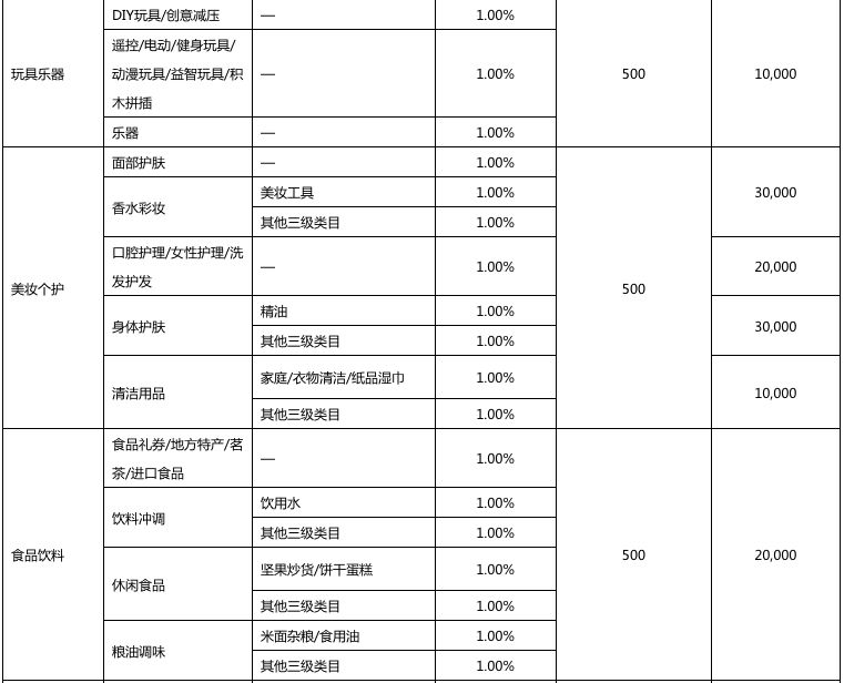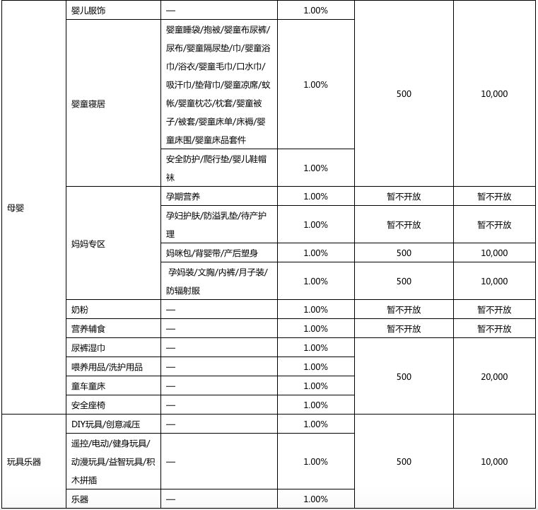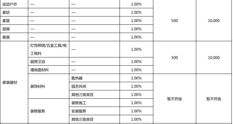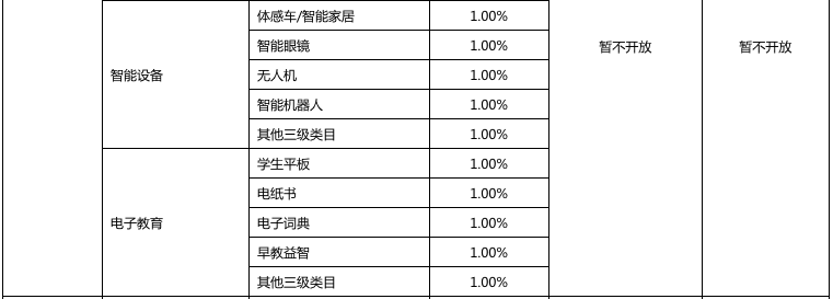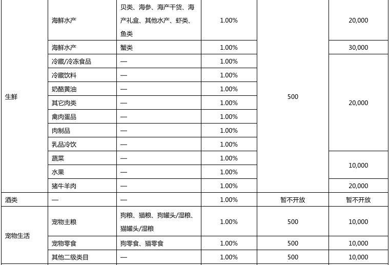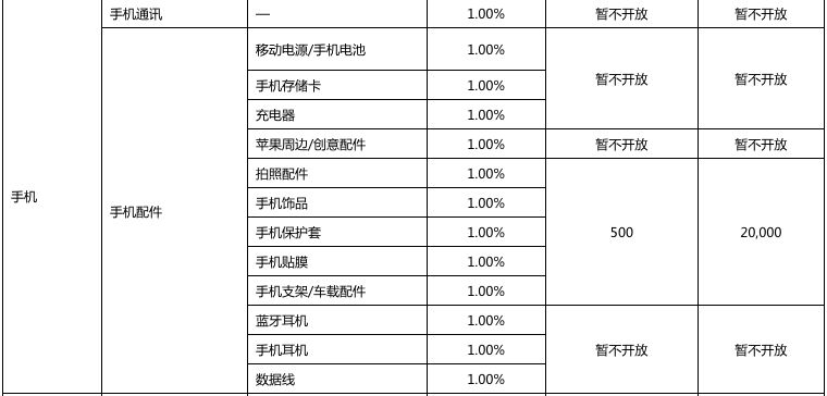 以下是2018年京东开放平台拼购业务资费一览表