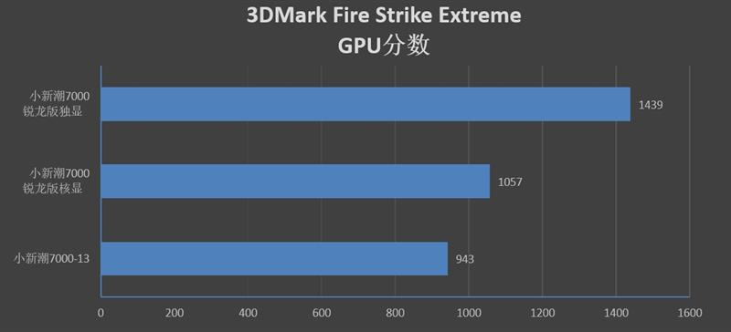 小新潮7000-15锐龙版核显在3DMark Fire Strike Extreme中的图形分数为1057。