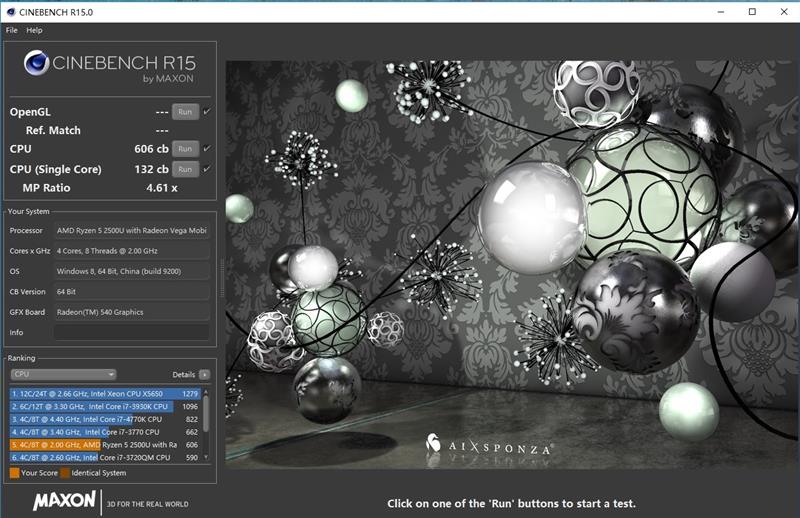 小新潮7000-15锐龙版在CineBench R15中单核分数为132cb,多线程成绩则为606cb。