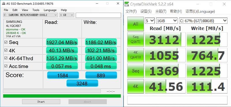 在CrystalDiskMark测试中,小新潮7000-15锐龙版顺序读写速度分别达到了3112MB/s和1225MB/s,非常强悍。