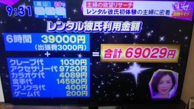 一位单身姑娘,在上面租借了一名男友,6 小时花了折 39000 日元,大概 2300 RMB。