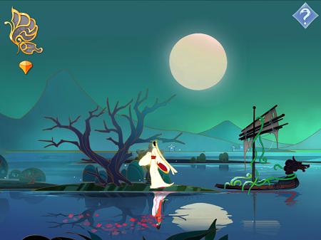 主人公小女孩曾经拥有着整轮满月,而在之后却失去了它,于是踏入了这片由皓月、繁华组成的梦幻世界。追寻月关的过程中,头顶上可见而不可及的月牙,身边四处可见的花瓣,搭配上色彩偏暗的背景颜色,优美中又带点忧伤的背景音乐,点击道具后发出的悠长声效,将整个游戏烘托出了一股寂寥的氛围。