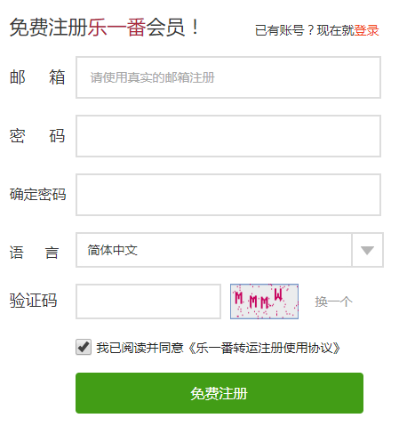 我们用邮箱+刚刚设置的密码登录转运公司网站