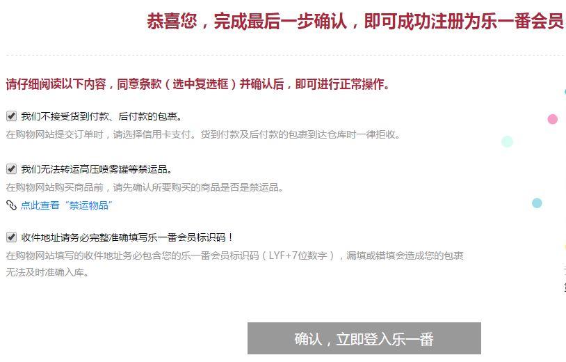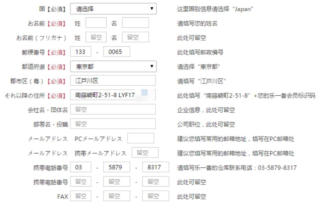 注意乐一番要求小仙女们在购物网站填写转运地址的时候