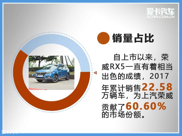自上市以来,荣威RX5一直有着相当出色的成绩,2017年累计销售了22.58万辆车,为上汽荣威贡献了60.60%的市场份额。自SUV热潮蔓延开来,紧凑型SUV市场便处于主导地位,有着相当多的用户,荣威RX5在这种情况下能够突出重围,可见消费者对于车辆的认可。车辆率先在设计上下功夫,更符合年轻消费者的审美,配备的YunOS车载系统功能较强,在同级别车型中也可圈可点。综合来看,表现抢眼,不过,随着竞品推陈出新速度的加快,荣威RX5也面临不小的挑战。