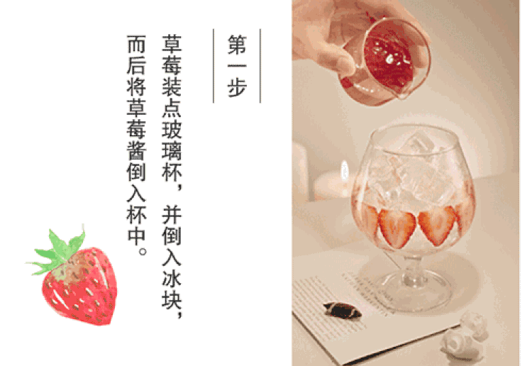 打开小程序后是一段像是进入某个网红甜品店的动画,然后点击“今日特饮”,会出现一段视频教程。第一期教的甜品是“草莓羞红脸”(主要是冰激凌),第二期是“酸甜种草机”(酸奶)。