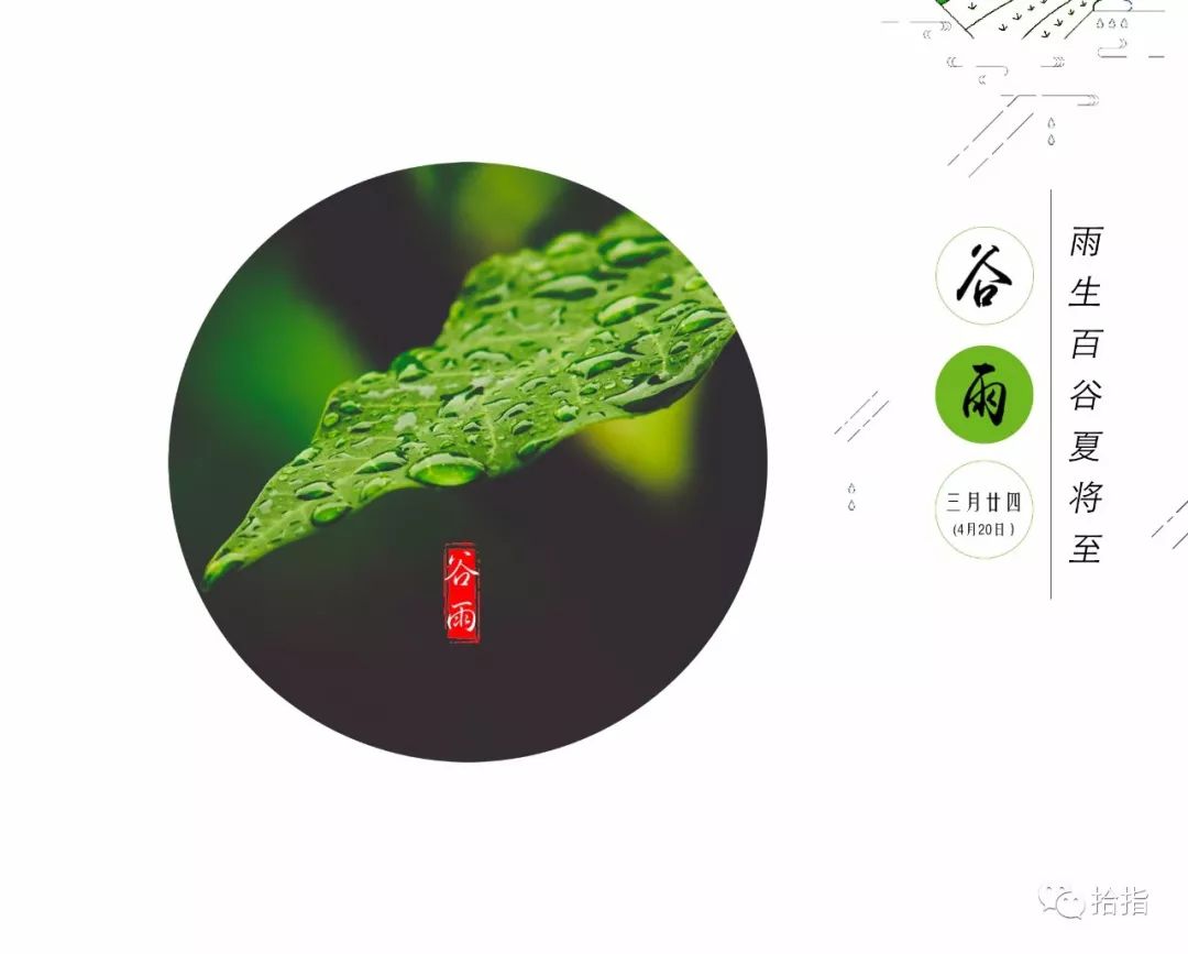 每年的农历三月中,即阳历4月19-21日,太阳到达黄经30度。天气温和,雨水明显增多,对谷类作物的生长发育帮助很大。谷雨是二十四节气中的第六个节气,是春季的最后一个节气,也是唯一将物候、时令与稼穑农事紧密对应的一个节气。