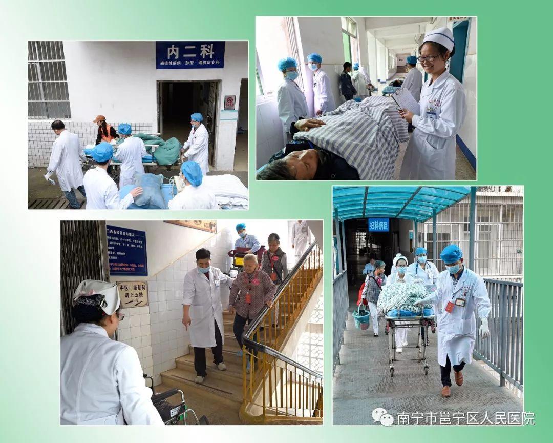在历时三天的整体搬迁中,得到公安交警及城管等部门大力支持,派出大量警力维护医院治安和确保转运车辆通畅;各卫生院派救护车参与组成本次搬迁强大队伍;由市一医院重症医学科、急诊科专家组成的强大团队参加并指导危重症患者转运,为重症病人安全转运提供强大技术力量保障。整个搬迁过程安全、紧凑、高效、有序,做到搬迁前计划周全,搬迁时快捷有序交接无缝,保证了医疗过程的连续性和安全性,赢得了患者、家属及社会各界广泛好评,充分展示邕宁人医团结协作、无私无畏、优质高效的团队精神。医院完成整体搬迁后,位于蒲庙镇和平三街49号老院3月30日起停诊不再提供医疗服务,位于龙岗新区新邕路的新院区4月1日全面接诊。