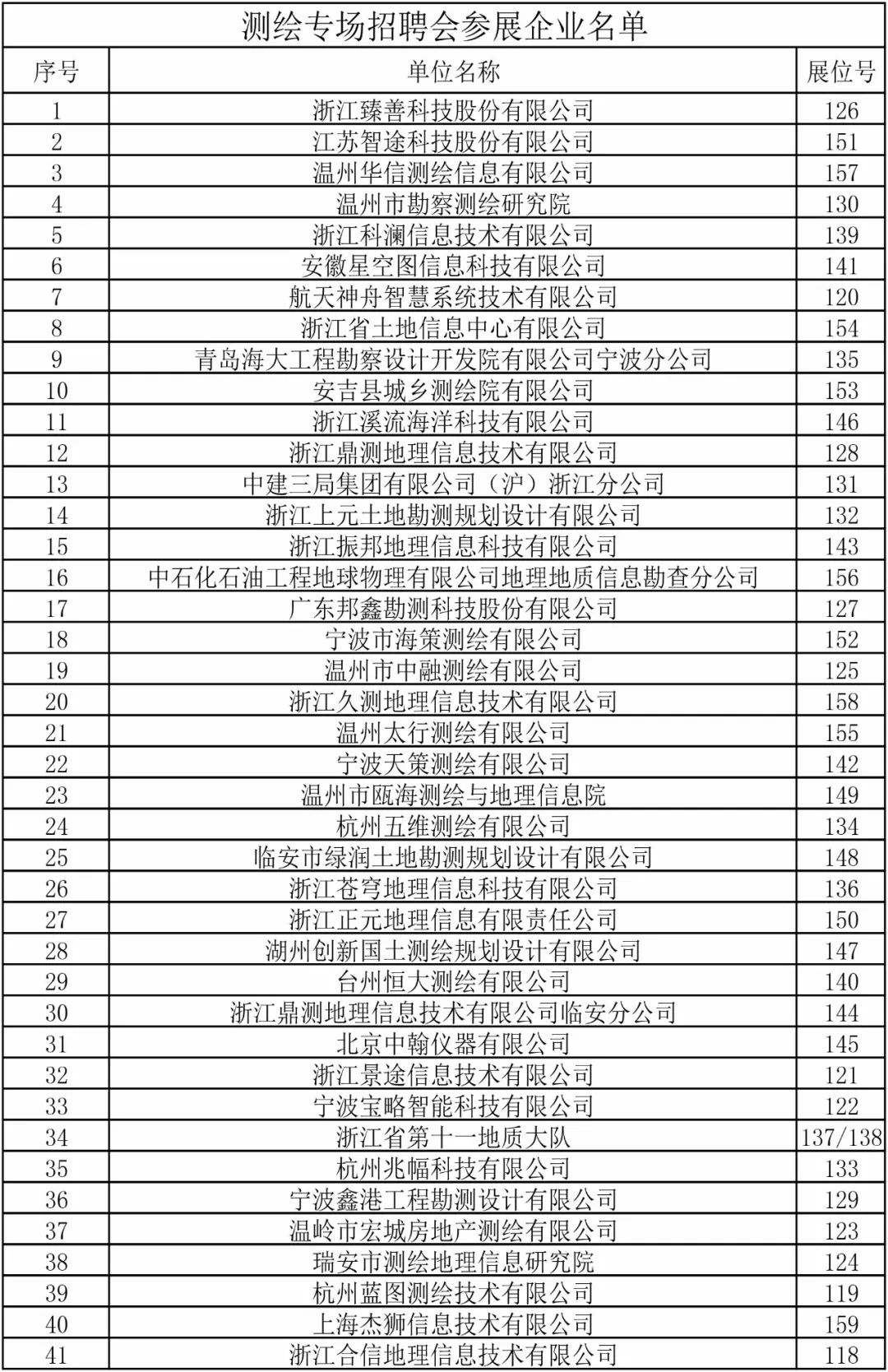 同场举行的测绘行业专场集聚了不少知名企事业单位,如浙江省第十一地质大队、浙江省土地信息中心有限公司、浙江正元地理信息有限责任公司、温州市勘察测绘研究院等,业务范围覆盖工程测量、不动产测绘、海洋测绘、软件系统开发及测绘技术咨询服务等测绘行业全领域。
