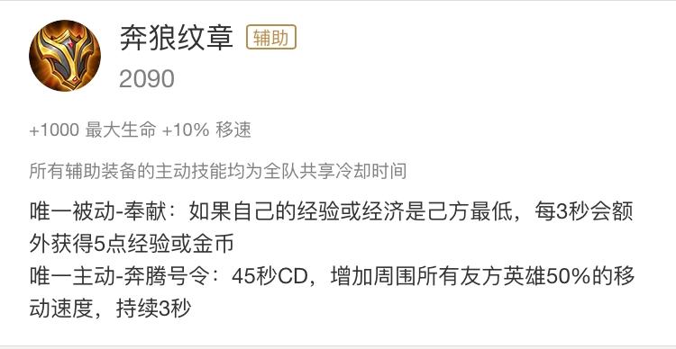 盾牌可以说是最受欢迎的辅助装备了,因为它的主动效果可以在关键时刻出其不意的救命,因此这件装备不仅辅助会出,有些战士也会出。从装备本身而言,这件装备的容错率非常高,不管是什么阵容都能用。但是小编通过个人经验总结这件装备虽然效果非常赞,但是这件装备在前期其性价比不如极影,在中后期其效果又不如奔狼纹章。可能有人会说,主动盾在关键时刻可以救命,是的,这件装备很适合逆风的时候出,因为需要抗伤害,这件装备可以完美的发挥它的作用。但是在顺风局,往往是盾还没有用,团战就胜利了,因此这件装备我见过很多人出,但是没几个人会用(尴尬)。