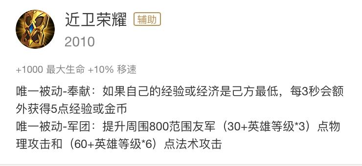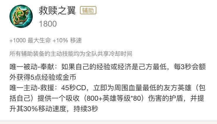 这件辅助装备在游戏中是较为常见的意见装备的,但是这件装备没有主动效果只有被动效果,同时由于其被动效果跟自身等级有关,因此不建议作为第一件装备去出,这件装备在前期的性价比很低,适合中后期打团频繁的时间出。