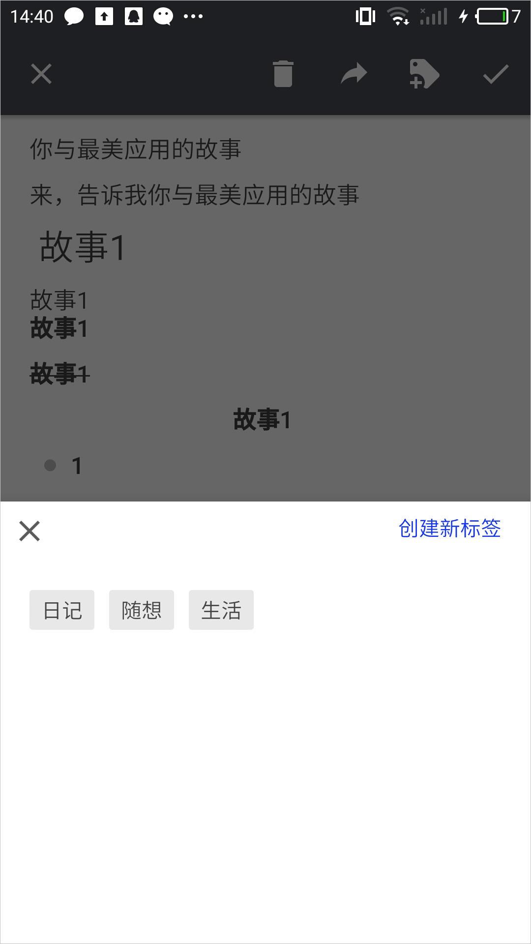 针对于文本的编辑,提供了标题的样式,以及加粗,划线文字,剧中显示以及列表形式。虽然不是特别多,但是对于我们这种随笔记录的小清新来说是足够的。
