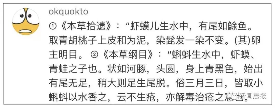 本草纲目记载蝌蚪能解毒治疮并无科学依据,