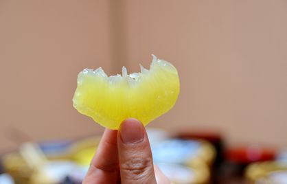 这里的柚子虽然一个能有10斤重,但它剥出来的果肉特别迷你,跟外表非常不相符。由于柚子皮厚,所以放一个月都不会坏。