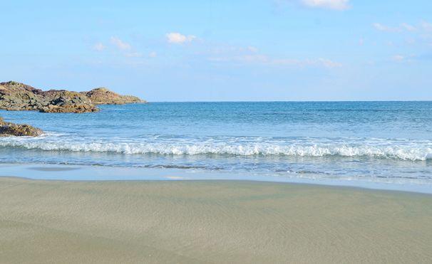 细腻的沙滩,清澈透明的太平洋海水,以及两边的亚热带植物,景色完全不逊色于热带海岛。