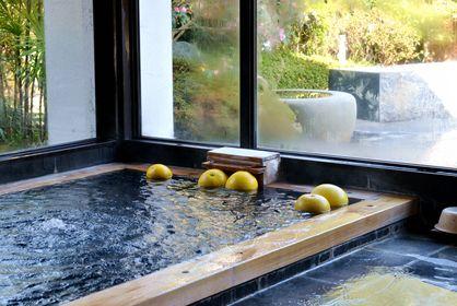 熊本县八代市日奈久盛产大柚子,而且这里有非常特别的“柚子温泉”,柚子浮在水面上的样子非常有趣。
