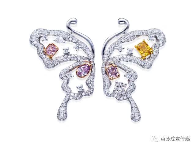 这对彩钻配钻石蝴蝶造耳环,就算只戴一只在耳畔就已经非常吸睛,精致又干练,blingbling的彩钻更是让人看了就想要。但大概没有人会相信,这对钻石耳环的定价不出3万元!