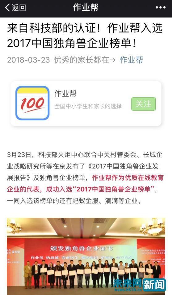 3月23日,猿辅导、作业帮都通过官微信公众号发布了入选独角兽企业的消息。