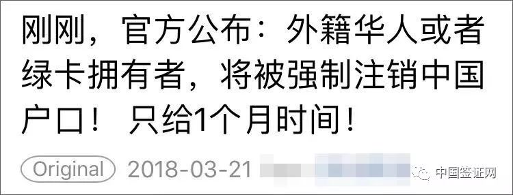 一条“持绿卡华人将被强制注销户口”的帖子
