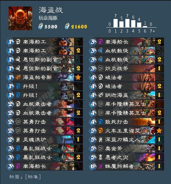 没错,曾经让人闻风丧胆的海盗战来了。但是直播的时候主播也承认,现在的海盗战,只能算T3-T4卡组了,“打错一手,就得靠一次神抽;打错两手就得靠两次神抽;打错三手,直接GG了”。在实操中需要注意几个问题,首先这已经从一套快攻卡组变成了一套要站场打输出的*牌套**;其次这套卡组是要视环境变更的——大多数对局里起手都要找“恩佐斯的副官”,“愚者之灾”主要针对鱼人骑,“蛛魔拆解者”针对奥秘法……如果你的环境里这些卡组不多,那么可以替换成更激进的单卡。