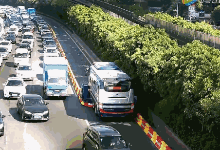 深圳的潮汐车道参照美国金门大桥相关经验定制形成,潮汐车道‘拉链车’的变道作业速度可达5-10公里/小时,可像调整‘拉链’一般,按照车流量随时‘吞吐’为潮汐车道专门研制的水马组合体,动态调整车道宽度。