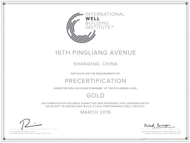 (图示为:光大安石中心WELL预认证™-金级荣誉证书)