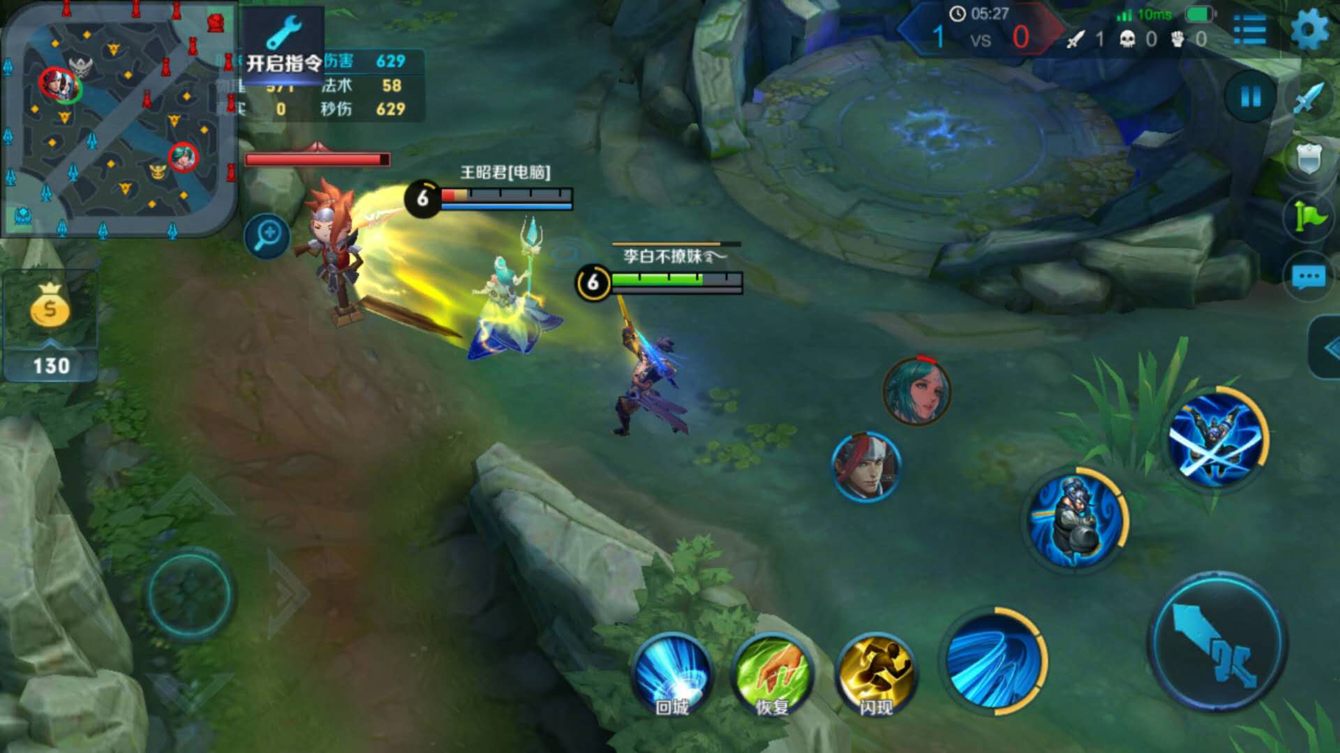 ②1技能伤害很高,尽量命中一条直线上的所有小兵,可大大提高清兵效率