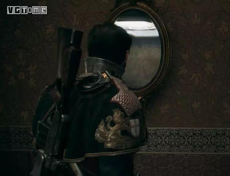 如下图,《教团1886》里开场不久的镜子,因为反射是假的,所以人物走过去是不会有映射的,这不是疏忽,当时是真做不到。当然有一种做法是在镜子的里面放一个模型,然后做骨骼的镜像,再做融合,但成本实在太大,包括玻璃的反射折射都没有很好的解决。目前的做法就是镜子能就不摆。