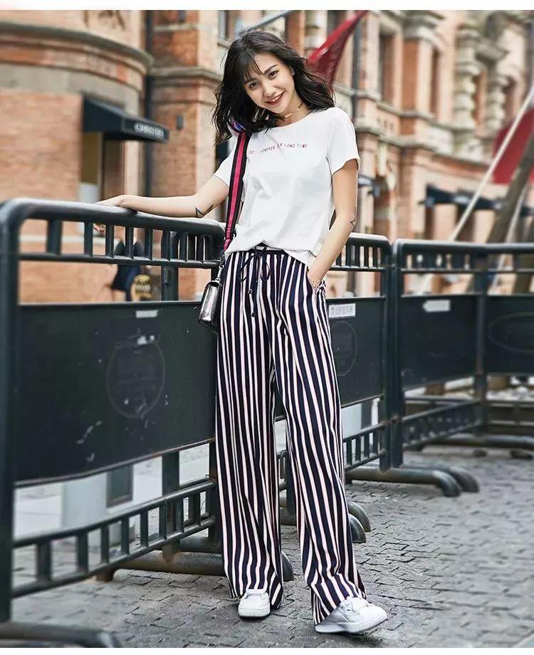 阔腿条纹裤是一个不错的选择,春季夏季穿都合适,而且还好看百搭,主要是显瘦显高,你们也都知道阔腿裤遮肉显高。加上竖条纹在视觉上有拉长的效果。